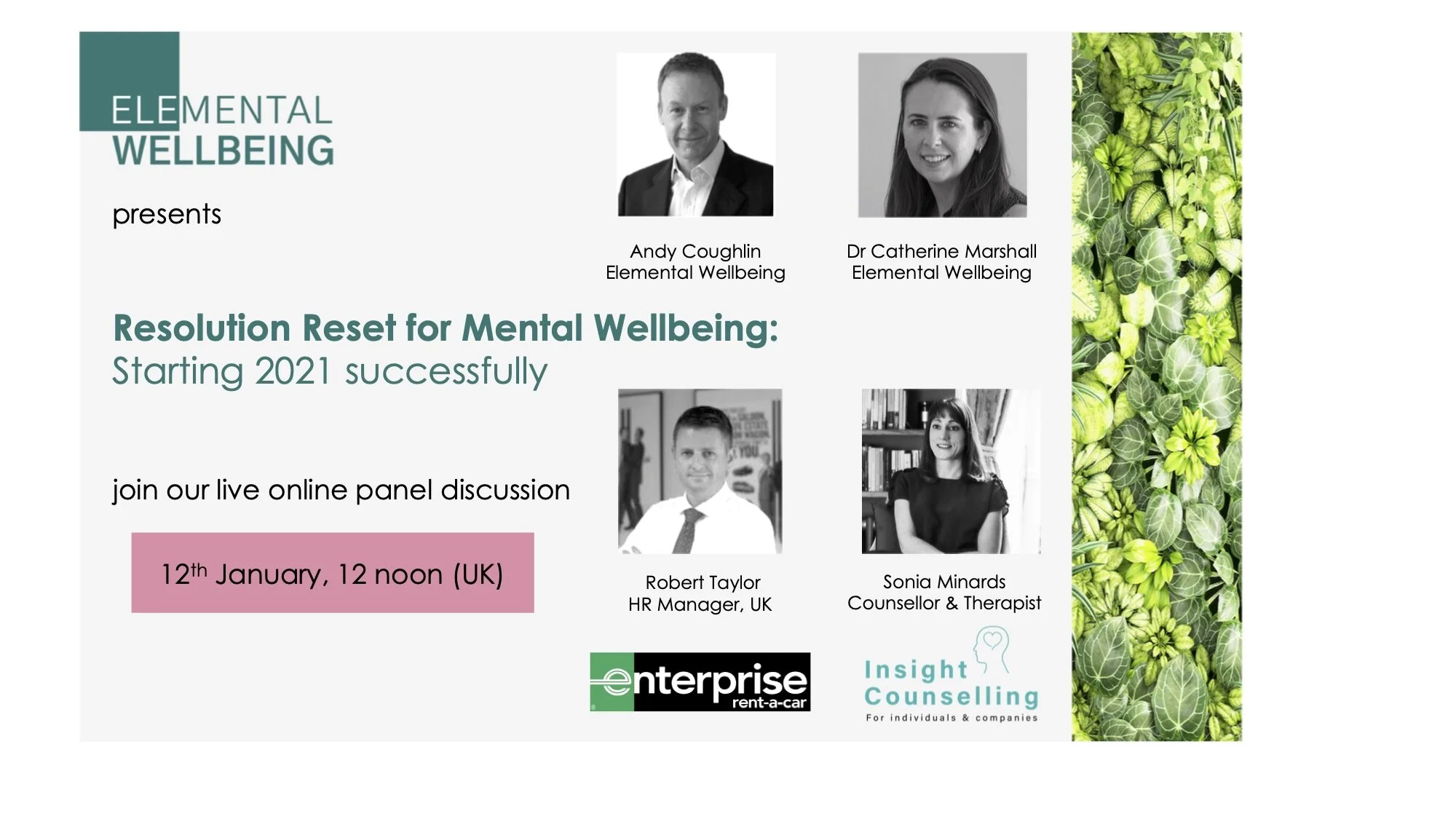 I'll be joining the fab team at Elemental Wellbeing Ltd with Catherine Marshall and Andy Coughlin on the 12th January to talk about this, and to look back at what we learnt in 2020 about our own mental wellbeing needs and how best to support them.